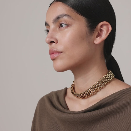 The JENNY BIRD Penelope Chokeris an interlocked, woven nature of this choker imbues your neck with a bold look. Fitted with a hidden egret profile closure. Available in two sizes and finished in high-polish gold.